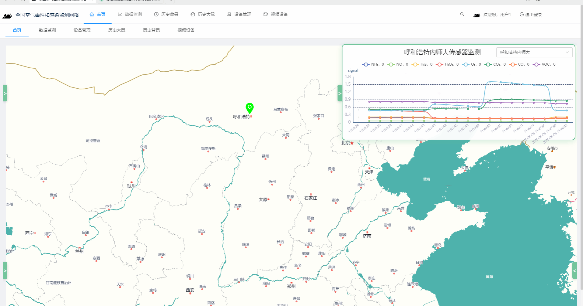 作为环境健康研究院的重要支撑平台,我们在呼和浩特赛罕区部署了基于大鼠实时在线监测空气毒性的系统。参与了京津冀蒙的大气污染综合观测计划,并将呼和浩特与北京作为监测点进行长期实时监测,相关结果也为两地不同城市群空气质量分析提供了数据基础。