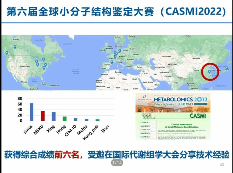 韦教授团队在2022年KISS ME小分子结构鉴定大赛中表现出色,综合成绩位列全球前六。这是中国团队首次参与该赛事,展现了他们在小分子识别领域的实力。由于小分子化学空间庞大,传统方法识别准确率仅约20%。韦教授团队通过AI算法优化,结合分子指纹和谱图特征向量,将准确率提升至58.3%,在全氟化合物结构鉴定中达到全球领先水平。