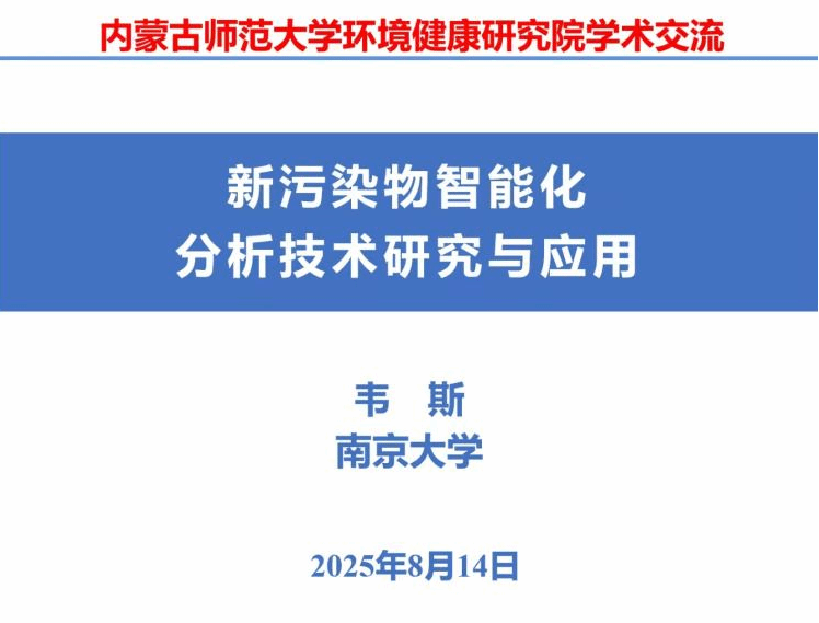 2025年8月14日,北疆环境健康大讲堂第八十六期学术报告会成功举办。本次大讲堂我们邀请到了南京大学韦斯教授为我们带来了题为《新污染物智能化分析技术研究与应用》的精彩报告。报告由要茂盛教授主持,研究院师生积极参与会议参与。