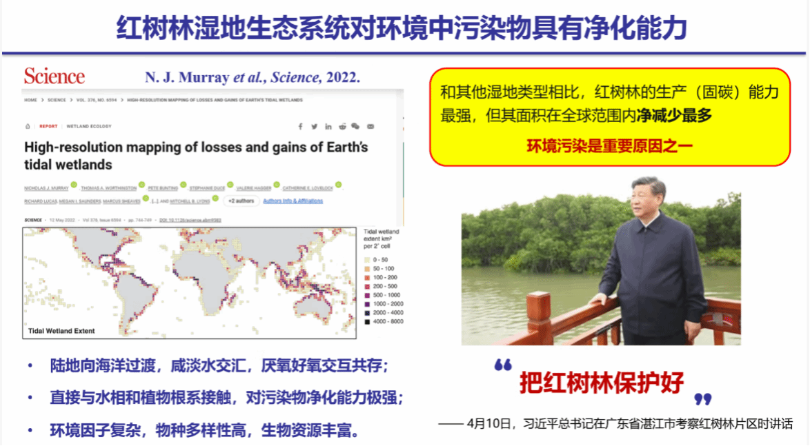 本次报告系统揭示了红树林湿地生态系统中污染物的迁移转化规律与生物地球化学过程,不仅为理解海岸带污染生态效应提供了新视角,也为发展基于自然解决方案的污染控制与生态修复技术奠定了科学基础。