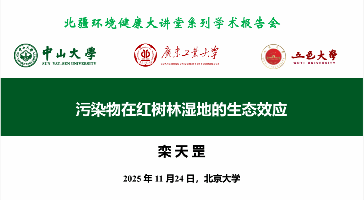 2025年11月24日,北疆环境健康大讲堂第九十五期系列学术报告会成功举办。本次报告会特邀五邑大学栾天罡教授,为我院师生带来题为《污染物在红树林湿地的生态效应》的精彩学术报告。报告会由要茂盛教授主持,研究院师生积极参与交流。