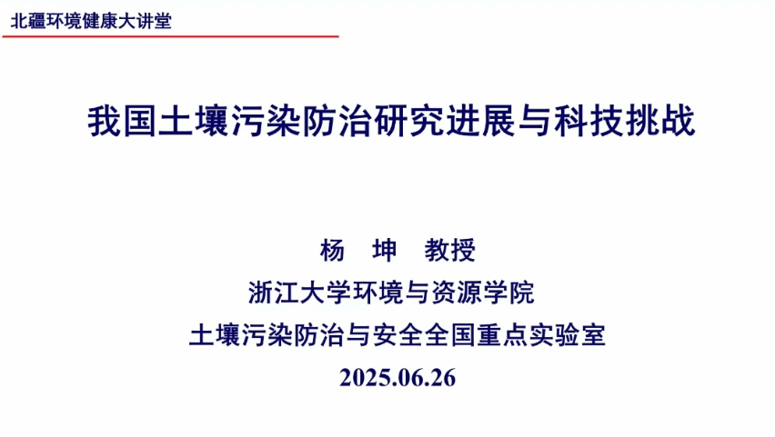 2025年6月26日,环境健康研究院第六十八期系列学术报告会成功举办。本次报告邀请到浙江大学杨坤教授,为师生带来了题为《我国土壤污染防治研究进展及科技挑战》的精彩学术报告。报告由要茂盛教授主持,研究院师生积极参与。