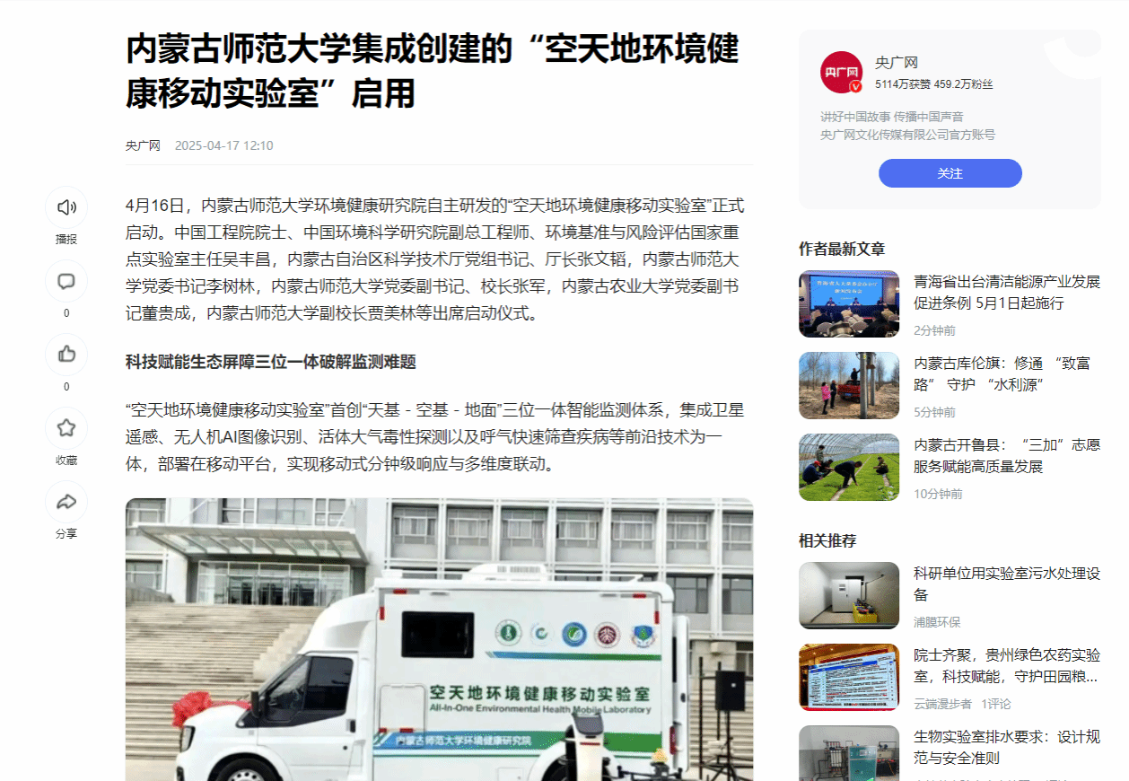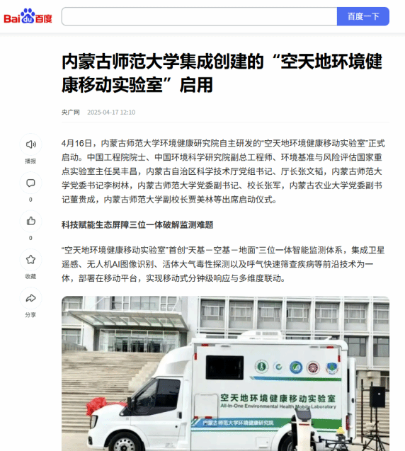 IE&H IMNU要闻 | 内蒙古师范大学环境健康研究院创新集成的“空天地环境健康移动实验室”正式启用!
